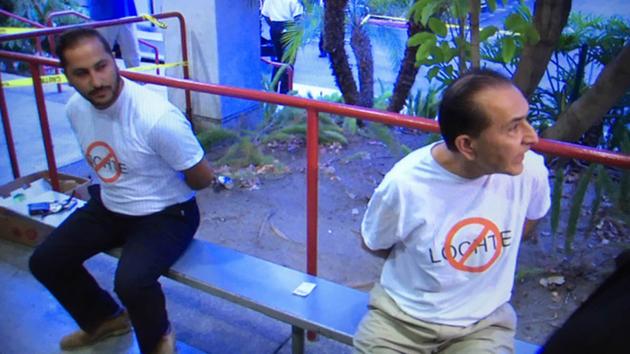 Us Weekly has now obtained unaired, unseen footage of the protesters approaching the judge’s table as the drama unfolded. In the video above, the suspects, L.A. residents Sam Sotoodeh, 48, Barzeen Soroudi, 40, interrupted the show by standing in front