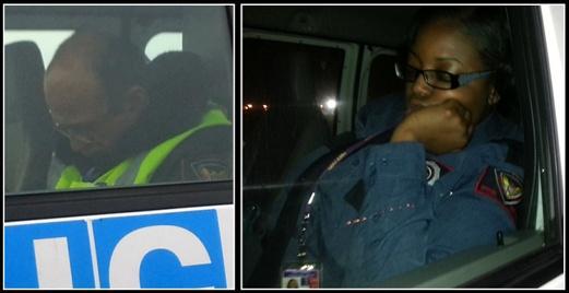 Wake up! Photos, video show JFK Airport security guards dozing at key posts. A guard identified as Suhas Harite (left) nods off in an official car at a post near Jamaica Bay, while a woman identified as guard Tiana Small (right) naps in another car on duty at JFK.
