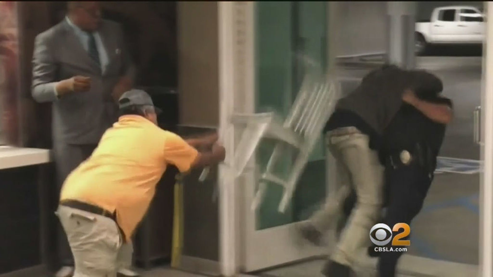 Security guard, several people brawl at McDonald’s in California. SANTA MONICA, California (WPVI) — A fight broke out between a few people and a security guard at a Santa Monica, California McDonald’s early Wednesday morning, and it was all captured on video. According to KABC-TV, the fight happened around 5 a.m., according to the witness who recorded the incident. The witness said fights happen often at the location and many homeless people sleep in the area. The fight the person recorded involved customers who were drinking beer inside the restaurant but who had not purchased food, according to the witness. They said the security guard went up to the group, asking them to leave because they were loitering.