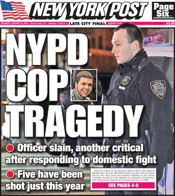 NYPD Officers Jason Rivera, Wilbert Mora Shot In Deadly …https://newyork.cbslocal.com › 2022/01/22 › harlem-p…13 hours ago — NEW YORK (CBSNewYork) — An NYPD officer was fatally shot in Harlem on Friday evening. The officer has been identified as 22-year-old Jason …